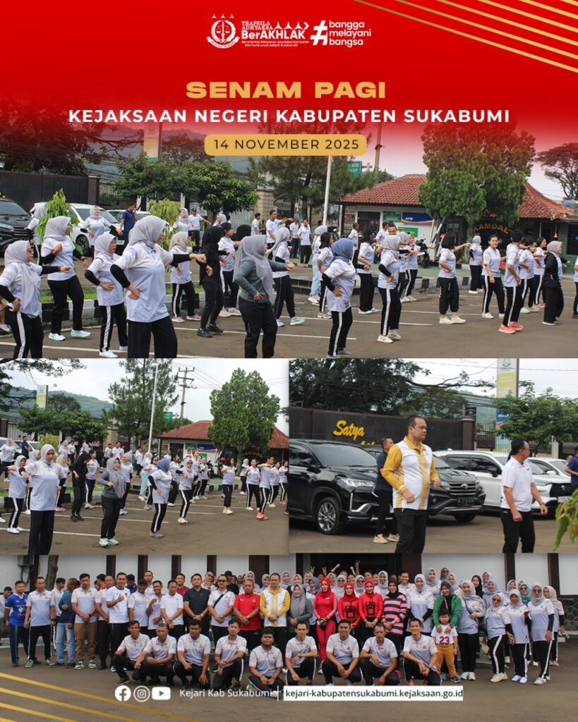 Pada Jumat, 14 November 2025, Kejaksaan Negeri Kabupaten Sukabumi melaksanakan kegiatan senam pagi di halaman kantor Kejari. Kegiatan ini diikuti oleh Kepala Kejaksaan Negeri Kabupaten Sukabumi, Hanung Widyatmaka, S.H., para kepala seksi, serta seluruh pegawai.