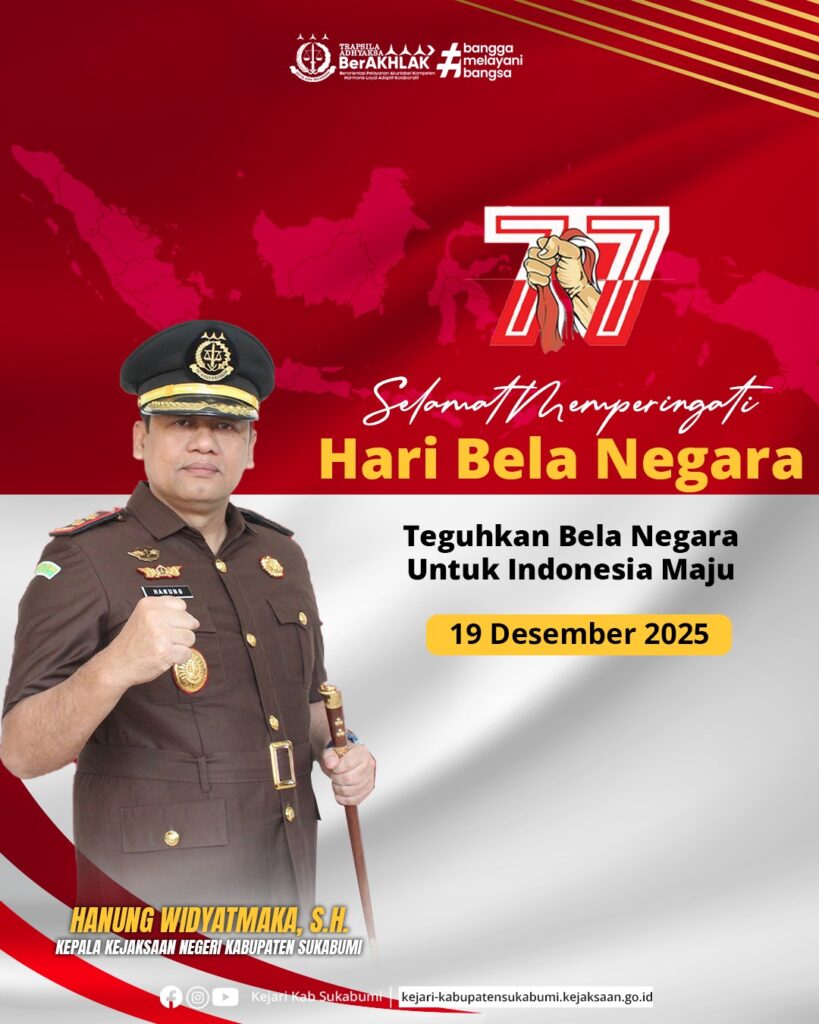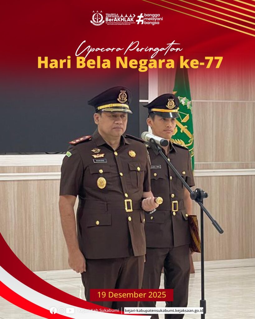 Jumat, 19 Desember 2025 — Bertempat di Aula Kejaksaan Negeri Kabupaten Sukabumi, telah dilaksanakan Upacara Peringatan Hari Bela Negara ke-77 Tahun 2025 dengan mengusung tema “Teguhkan Bela Negara, Untuk Indonesia Maju”. Upacara berlangsung dengan khidmat dan penuh semangat nasionalisme.