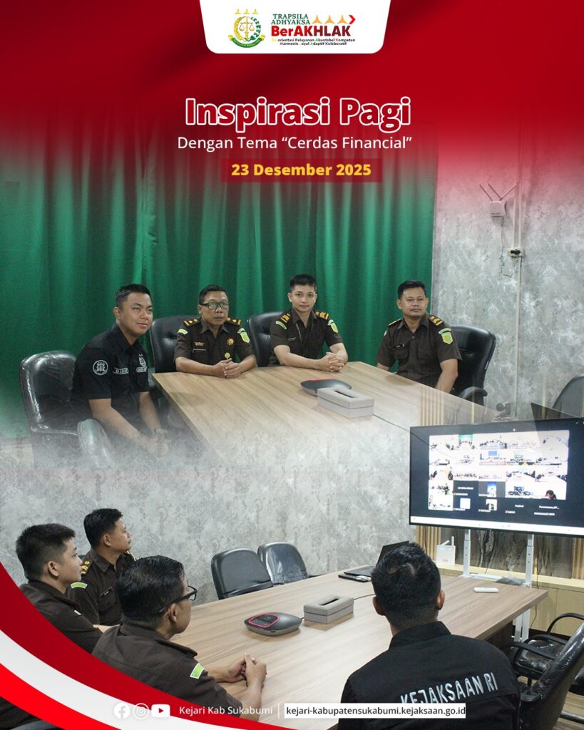 Pada Selasa, 23 Desember 2025, Kejaksaan Negeri Kabupaten Sukabumi melaksanakan kegiatan Inspirasi Pagi yang bertempat di Aula Kejaksaan Negeri Kabupaten Sukabumi. Kegiatan ini mengusung tema “Cerdas Finansial: Mengelola Keuangan Secara Bijak untuk Mendukung Profesionalisme dan Kesejahteraan Aparatur.” dan diikuti oleh seluruh pegawai.
