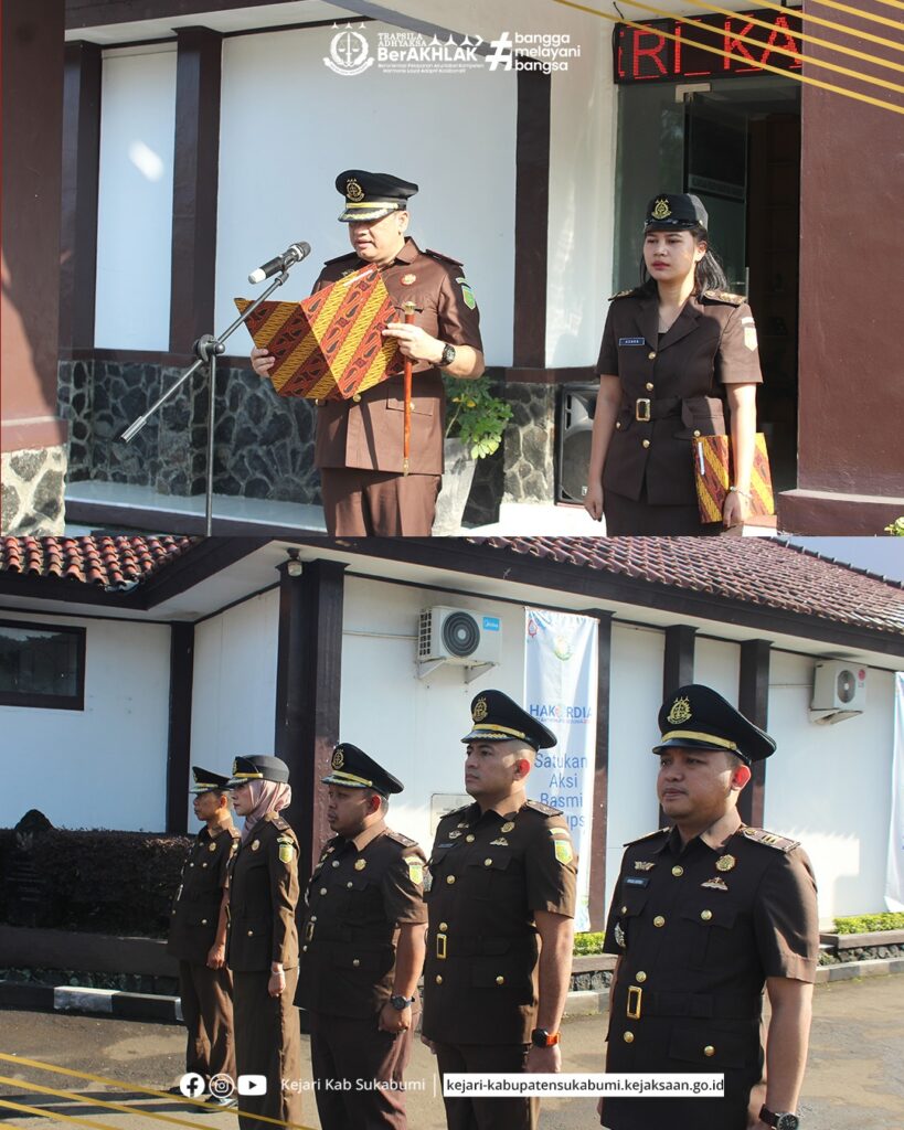 Bertindak selaku inspektur upacara, Kepala Kejaksaan Negeri Kabupaten Sukabumi, Hanung Widyatmaka, S.H., memimpin jalannya kegiatan yang diikuti oleh seluruh pegawai Kejaksaan Negeri Kabupaten Sukabumi. Upacara berlangsung dengan khidmat sebagai bentuk penghormatan serta penguatan semangat bela negara di lingkungan aparatur penegak hukum.
