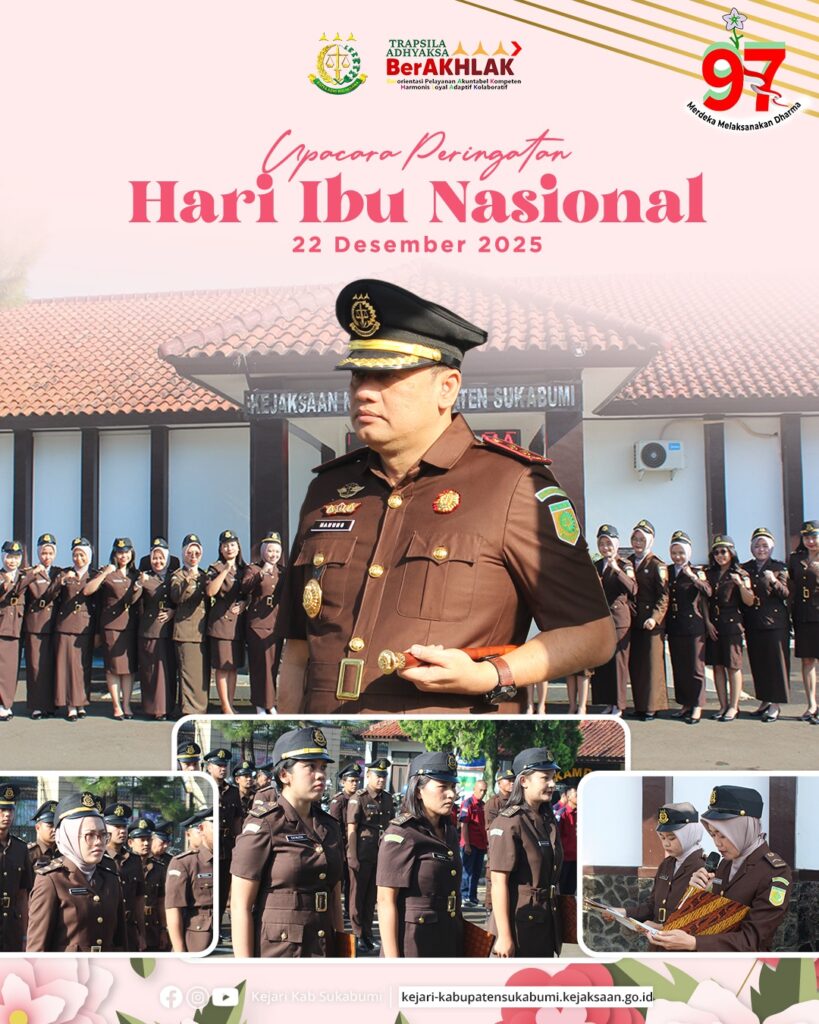 Pada Senin, 22 Desember 2025, Kejaksaan Negeri Kabupaten Sukabumi melaksanakan Upacara Peringatan Hari Bela Negara ke-77 Tahun 2025 yang bertempat di Aula Kejaksaan Negeri Kabupaten Sukabumi. Upacara tersebut mengusung tema “Teguhkan Bela Negara, Untuk Indonesia Maju.”