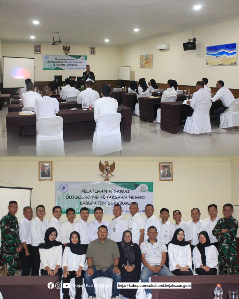 Pada Sabtu hingga Minggu, 3–4 Januari 2026, Kejaksaan Negeri Kabupaten Sukabumi melaksanakan kegiatan Pelatihan Pegawai Outsourcing sebagai upaya peningkatan kualitas sumber daya manusia pendukung di lingkungan Kejaksaan Negeri Kabupaten Sukabumi. Kegiatan pelatihan tersebut berlangsung selama dua hari dan diikuti oleh seluruh pegawai outsourcing.
