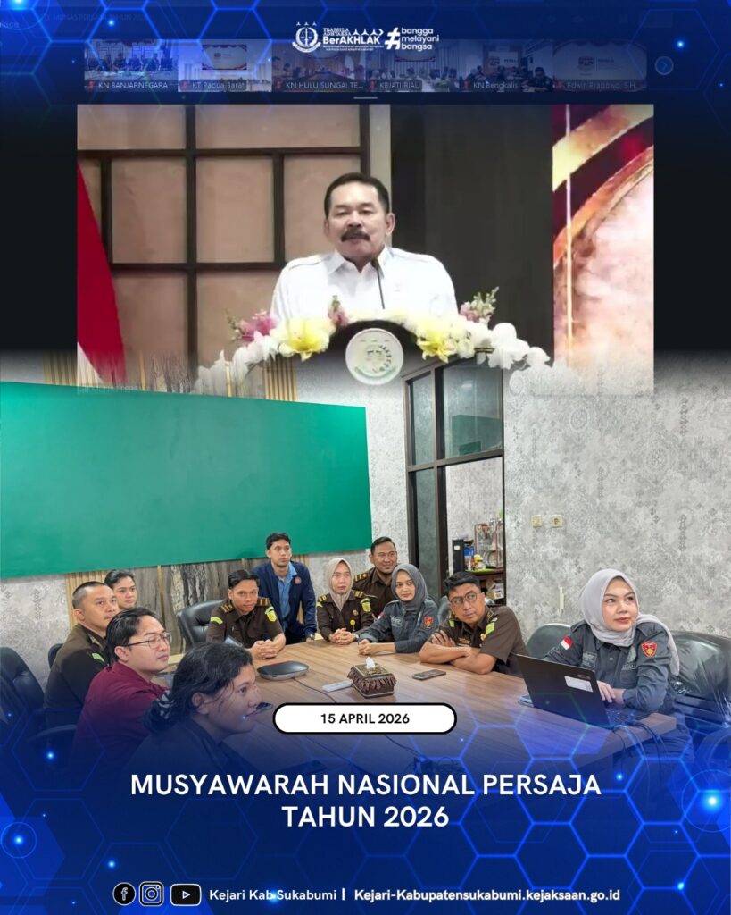 Keluarga besar Kejaksaan Negeri Kabupaten Sukabumi mengikuti pembukaan Musyawarah Nasional Persatuan Jaksa Indonesia (PERSAJA) Tahun 2026 secara virtual.