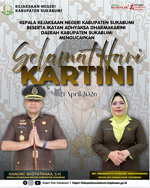 Kepala Kejaksaan Negeri Kabupaten Sukabumi, Bapak Hanung Widyatmaka, S.H., beserta Ketua Ikatan Adhyaksa Dharmakarini Daerah Kabupaten Sukabumi, Ny. Pramusita Hanung Widyatmaka, mengucapkan: