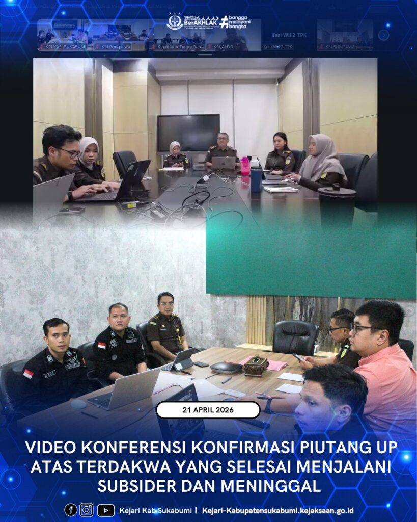 Kejaksaan Negeri Kabupaten Sukabumi melaksanakan kegiatan Video Konferensi Konfirmasi Piutang Uang Pengganti (UP) sebagai bagian dari penguatan koordinasi dan tertib administrasi penanganan perkara.
