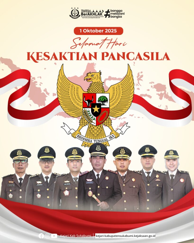 Kepala Kejaksaan Negeri Kabupaten Sukabumi, Romiyasi, S.H., M.H., beserta seluruh jajaran pegawai, mengucapkan Selamat Memperingati Hari Kesaktian Pancasila – 1 Oktober 2025.