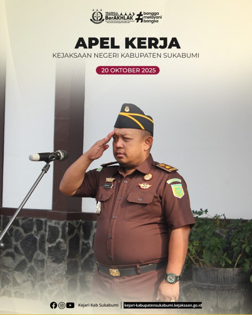 Senin, 20 Oktober 2025 — Bertempat di halaman Kejaksaan Negeri Kabupaten Sukabumi, telah dilaksanakan apel kerja rutin sebagai bentuk komitmen dalam menjaga kedisiplinan, meningkatkan kinerja, serta memperkuat integritas seluruh pegawai.