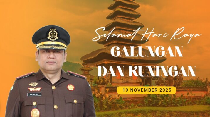 Kepala Kejaksaan Negeri Kabupaten Sukabumi bersama seluruh jajaran menyampaikan ucapan Selamat Hari Raya Galungan dan Kuningan kepada umat Hindu. Peringatan ini menjadi momentum untuk